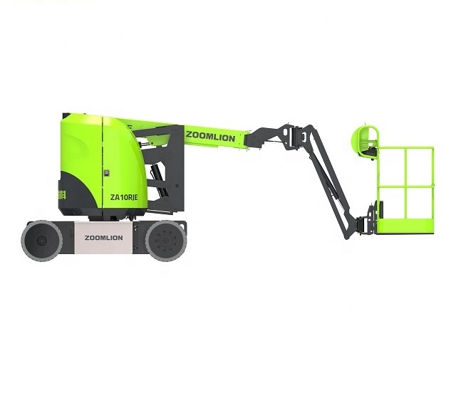ZOOMLION ZA10RJE отличается высокой маневренностью и способностью работать в ограниченных пространствах благодаря своему коленчатому механизму. Он оснащен электрическим приводом, что делает его экологически безопасным и бесшумным, что особенно важно при работах в закрытых помещениях. Максимальная высота подъема составляет 10 метров, что позволяет выполнять разнообразные задачи на высоте.